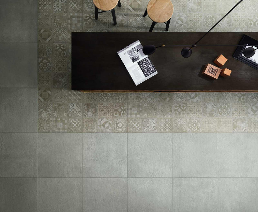 Gresie porțelanată Grigio din colecția Studio insipirată de suprafețele moderne din beton. Designul materialului este combinat cu tehnologia gresiei porțelantă Ragno pentru a acoperi spațiile contemporane.