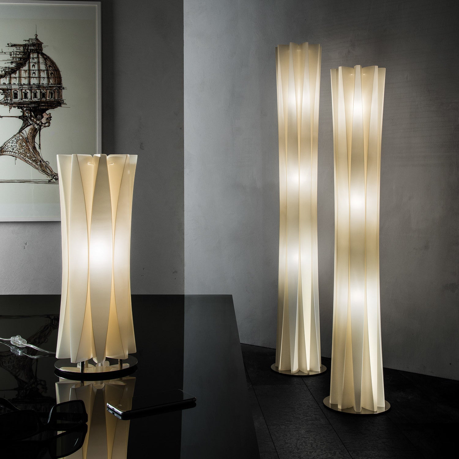 Colecția Bach de la Slamp este subțire, rafinată, cu curbe elegante dar riguroase, transmițând mișcare fluidă, liniară și iluminare în orice încăpere. Bach este disponibil în diferite înălțimi și dimensiuni, care, atunci când sunt grupat, creează colțuri primitoare pline de cromatică caldă.